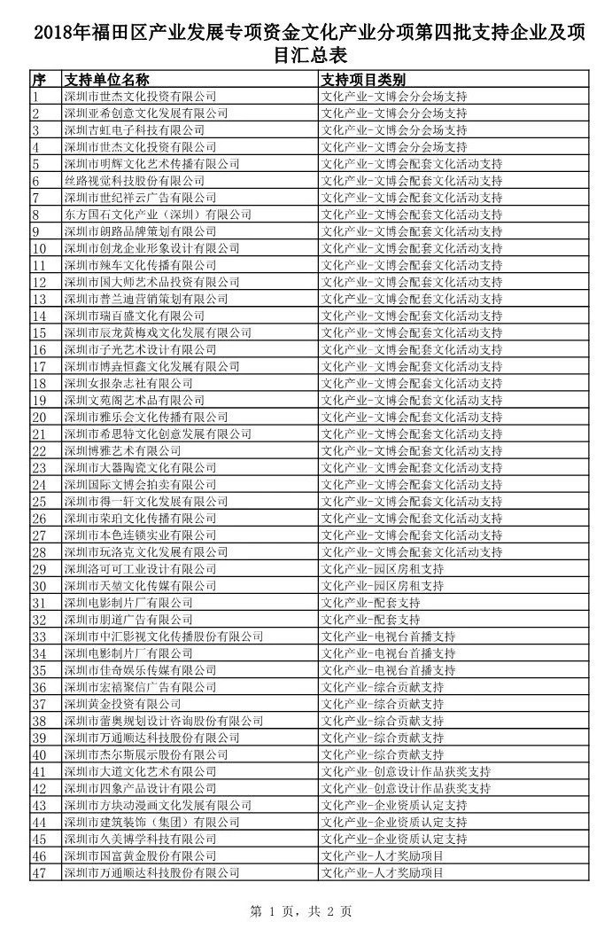 核心提示:2018年12月17日,福田企服中心公布了2018年福田區(qū)產(chǎn)業(yè)發(fā)展專項(xiàng)資金文化產(chǎn)業(yè)分項(xiàng)第四批支持企業(yè)及項(xiàng)目匯總表。其中,深圳市亞泰國際建設(shè)股份有限公司、深圳市南利裝飾集團(tuán)股份有限公司、深圳市大眾建設(shè)集團(tuán)有限公司等建筑裝飾企業(yè)獲得該項(xiàng)專項(xiàng)資金支持。支持項(xiàng)目類別有建筑裝飾設(shè)計(jì)行業(yè)——綜合貢獻(xiàn)支持、人才獎勵(lì)支持、創(chuàng)意設(shè)計(jì)作品獲獎支持、企業(yè)資質(zhì)認(rèn)定支持、R&D投入支持。